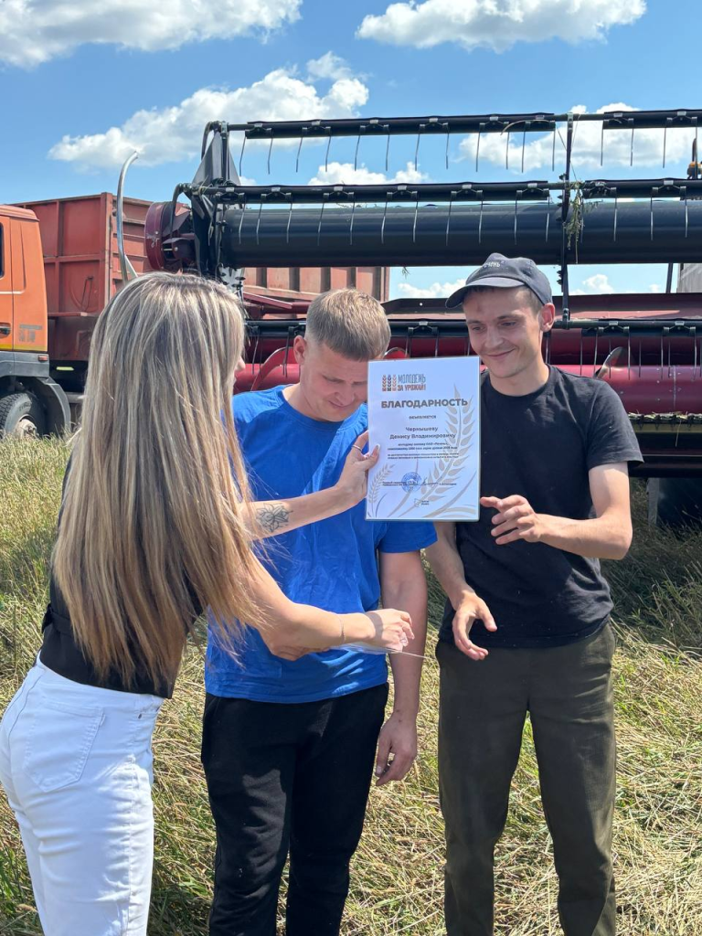 Первый секретарь районной организации Анастасия Ганчарик побывала в полях хозяйства и поздравила молодежные экипажи с высокими достижениями в уборочной кампании 2025.